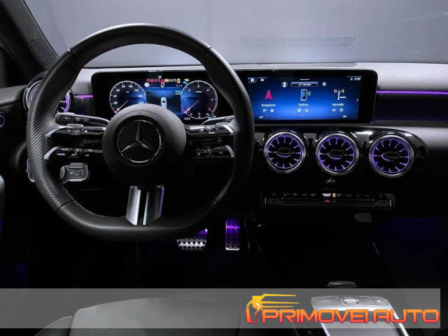 Cambio meccanico sequenziale con possibile funzionamento automatico a controllo elettronico a 8 rapporti Sedili sportivi in Artico e microfibra Dinamica neri Pacchetto integrazione per smartphone Sedili sportivi anteriori Impianto frenante sportivo con pinze dei freni anteriori con logo Mercedes-Benz Display sulla plancia con diagonale da 10,25" Climatizzatore automatico COMFORTMATIC Sistema di assistenza abbaglianti adattivi Fari LED High Performance Interfacce USB supplementari Display centrale da 10.25" Luci soffuse "Ambient" con 64 diversi colori Keyless-Go: permette di aprire e chiudere la vettura semplicemente avendo con sé la chiave elettronica G Line: Grembialatura anteriore AMG splitter cromato con rivestimenti sottoporta AMG, Grembialatura posteriore AMG con elementi decorativo cromato e mascherine dei terminali di scarico a vista, Listelli cromati sulla linea di cintura e dei finestrini, Mascherina del radiatore Matrix AMG con pin cromati e lamella singola verniciata e inserti decorati, Pedaliera sportiva AMG in acciaio legato spazzolato con gommini antisdrucciolo Volante sportivo multifunzione in pelle nappa a tre razze, con pulsanti touch control Pacchetto Parcheggio: Telecamera per la retromarcia assistita, Park Assist con PARKTRONIC Mirror Package: Retrovisore interno autoanabbagliante, Specchi retrovisori esterni ripiegabili elettricamente Navigazione Premium MBUX Premium AMG Line: 677 Assetto sportivo ribassato (15 millimetri), 873 Sedili anteriori riscaldabili elettricamente, 950 AMG Line, B51 Tirefit, PBG Navigazione Premium MBUX Cerchi in lega sportivi AMG da 18" a 5 doppie razze con pneumatici 225/45 R18 su 7,5 J x 18 ET 49 Supporto lombare regolabile su 4 parametri lato guida e passeggero