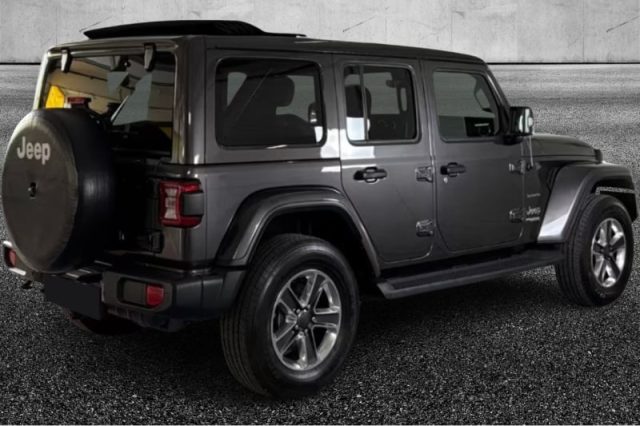 Parkview telecamera anteriore, Sensori di parcheggio posteriori, Controllo elettronico di stabilità (ESC), Cover ruota scorta, Cruise control, Fari a LED (LED Premium Lighting Group), Fendinebbia, Ganci traino posteriori, Keyless Go, Limitatore di velocità attivo, Luce indicatore di direzione su specchio, Luce interna LED, Monitoraggio pressione pneumatici, Portabicchieri anteriori illuminati, Radio Uconnect con schermo touchscreen da 8,4", navigatore, Retrocamera, Sistema audio 9 altoparlanti Alpine Premium, Soft Top Black Sunrider Premium, Specchietti retrovisori neri, Spot Led 8-punti, Storage tray, Tappetino vano carico, Volante in pelle, Assali Dana Nuova Generazione, Cerchi in lega da 18", Griglia anteriore in tinta carrozzeria, Hard-top modulare in 3 parti in tinta carrozzeria, Paraurti specifici Sahara ant. e post., Passaruota in tinta, Pedane laterali tubolari, Presa USB posti posteriori, Selec-Trac FULL TIME 2.72:1, Sistema Command-Trac, Pneumatici All Season, Sedile pieghevole posteriore 60/40, Schermo Uconnect 8,4" con Android Auto/Apple Car-Play e Navigatore, 8 altoparlanti, Cristalli oscurati, Impianto audio Premium Alpine, Rapporto al ponte 3.73, Selleria in tessuto neri, Chiave con transponder, Chiusura centralizzata, Correttore assetto fari, Immobilizzatore, Pretensionatore cinture, Appoggiatesta posteriori, Sedile guida regolabile in altezza, Vetri elettrici anteriori, Servosterzo, Filtro anti particolato, Bracciolo sedili anteriori, Indicatore temperatura esterna, Vetri elettrici posteriori, ABS, Hill Start Assist (Sistema di ausilio partenza in salita), Controllo elettronico della trazione, Airbag guida, Airbag passeggero, Airbag laterali, Autoradio, Bluetooth, Retrovisori termici reg. elettricamente, Climatizzatore automatico, Pedane laterali con trama antiscivolo, Cambio automatico a 8 rapporti, Retrovisore interno elettrocromatico, Luci diurne, Tappetini anteriori e posteriori, Airbag laterali anteriori, Quadro strumenti con display multifunzionale a colori da 7", Servizi Uconnect Live, Sensori di parcheggio anteriori, Comandi al volante, Kit fumatori, Parksense posteriore park assist system