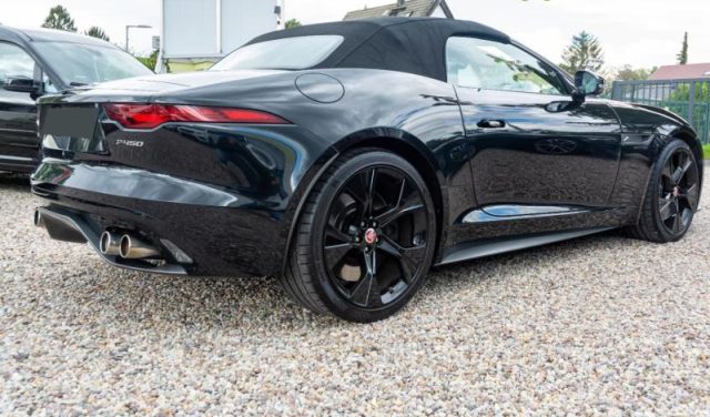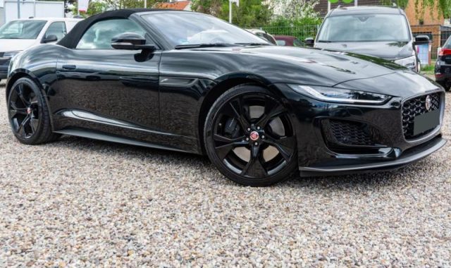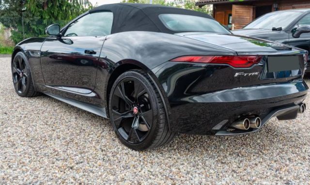 Online Pack, Illuminazione interna d'ambiente configurabile, Console centrale in alluminio First Edition, Interni First Edition, Rivestimento padiglione Ebony in tessuto scamosciato, Soglie delle portiere con scritta "First Edition", Volante in pelle e inserti in alluminio, Chiave con transponder, Correttore assetto fari, Pretensionatore cinture, Sedile guida regolabile in altezza, Vetri elettrici anteriori, Volante regolabile, Servosterzo, Indicatore temperatura esterna, Controllo elettronico della trazione, Dispositivo di ausilio alla frenata di emergenza (EBA), Freno di stazionamento elettronico (EPB), Controllo dinamico della stabilità (DSC), Airbag laterali, Computer di bordo, Airbag guida, Airbag passeggero, Bocchette di ventilazione anteriori a scomparsa, Calotte specchietti retrovisori esterni in tinta con la carrozzeria, Chiusura centralizzata con telecomando, serrature non sbloccabili e bloccaggio alla partenza, Illuminazione console superiore, Leva anti-intrappolamento bagagliaio, Luci di coda a LED, Maniglie delle portiere esterne a filo, Modalità Pioggia/Ghiaccio/Neve, Modalità Valet, Presa 12V e USB nella console centrale, Ripartitore della forza frenante (EBD), Specchietto retrovisore interno fotocromatico, Tergicristalli con sensore pioggia, Logo e scritta Jaguar, Cambio automatico a 8 rapporti, Allarme perimetrale e Immobilizer, Badge F-Type, Capote ad azionamento elettrico nera, Climatizzatore a una zona, Connettività Bluetooth, Doppio portabicchiere anteriore, Filtro antipolline, Griglie nere, Lane Keep Assist, Pulsante Start, Sistema di monitoraggio pressione pneumatici (TPMS), Sistema di protezione Roll-over, Sistema di riparazione pneumatici, Sistema frenante antibloccaggio (ABS), Spoiler posteriore mobile, Volante non riscaldabile, Dischi anteriori da 380mm e posteriori da 376mm, Scarichi attivi selezionabili, Alette parasole con specchietto di cortesia in tessuto scamosciato, Levette di selezione marce in alluminio, Tappetini in moqu