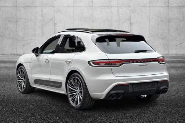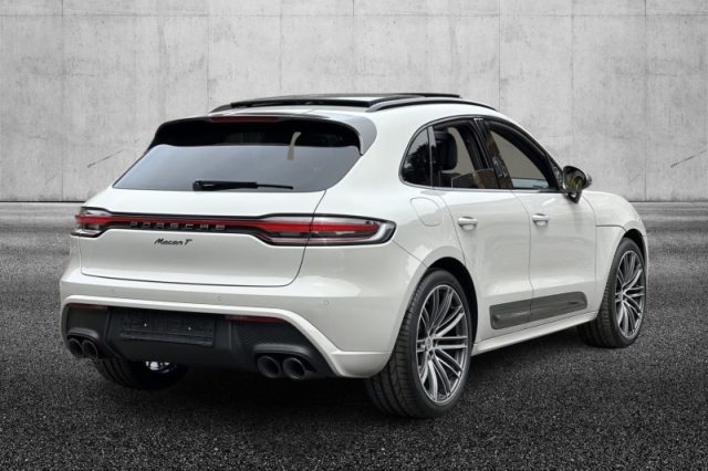 Airbag a tendina lungo l'intera area del telaio del tetto e dei cristalli laterali, Porsche Stability Management (PSM), Tergicristalli anteriori a 2 velocità, modalità intermittente e sensore pioggia, Airbag anteriori full-size per guidatore e passeggero, Lane Departure Warning (LDW) (spia di avvertimento abbandono corsia), Porsche Doppelkupplung (PDK) (Cambio a doppia frizione a 7 rapporti), Sistema d'immobilizzazione (Transponder) con chiusura centralizzata, Cruise control, Porsche Communication Management (PCM) incl. mod. di navig., ParkAssist (anteriore e posteriore) con segnale di avvertimento acustico e visibile, Specchi esterni SportDesign in nero (lucido), Alzacristalli el. ant. e post. con funz. di chiusura a distanza, protez. antischiacciam. e One-touch, Radio digitale, Sistema di allarme con sorveglianza interna basata su ultrasuoni, Climatizzatore automatico a 3 zone, Fari principali a LED incl. Porsche Dynamic Light System (PDLS), Pacchetto in pelle nera, Pacchetto interno Macan T, Sedili sportivi anteriori (8 vie, elettrici), Sideblade verniciate in nero (lucido), Sideblades verniciati nel colore dell'esterno con logo "Macan T" in nero lucido, Correttore assetto fari, Pretensionatore cinture, Appoggiatesta posteriori, Sedile guida regolabile in altezza, Volante regolabile, Filtro anti particolato, Retrovisori elettrici, Airbag laterali anteriori integrati nei sedili, Porsche Traction Management con trazione attiva (PTM), ABS, Freno multicollisione, Retrovisori ripiegabili elettricamente, Sedili posteriori ribaltabili separatamente (40:20:40) e poggiabraccia centrale ribaltabile, Bluetooth